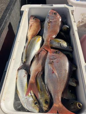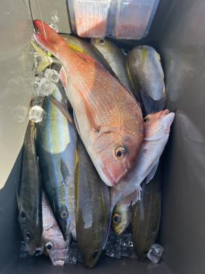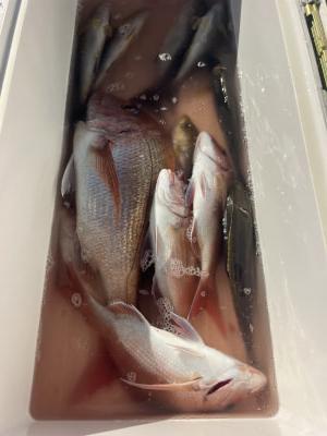 | シマアジ狙いからのオキアミ五目で出船しました‼️ シマアジはダメでしたがマダイ、ヤイトガツオ、イサギなど釣れました‼️ |