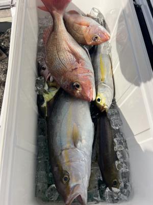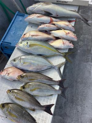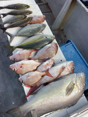 シマアジ、ヤイトガツオ、マダイ、カンパチ、コロダイ、メジロなど |