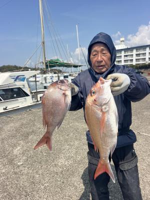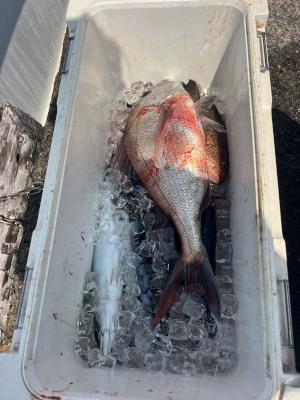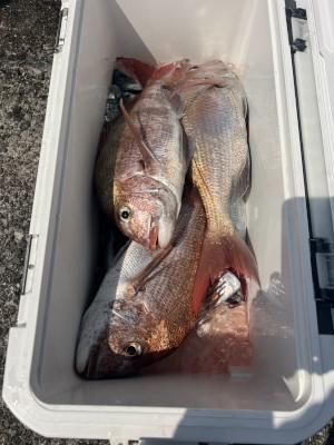 マダイ | 38〜65cm | 13匹 | 天秤ズボ、オキアミ用鉄仮面100号、ハリス4号 | オキアミ |