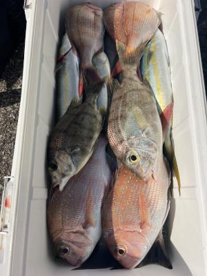 [シマアジ、マダイ、メイチダイ、ヤイトガツオ、イサギなど]
