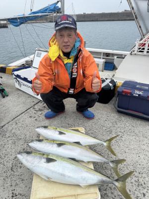 寒ブリ メジロ | 70〜85cm | 3匹 | 落とし込み仕掛け ハリス12号 |