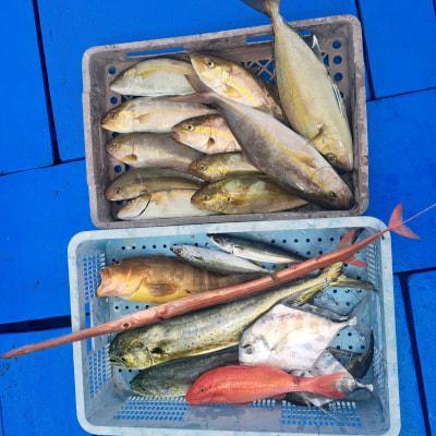 ジギングに出船しました。 今日もシオが良く当たりました。 シオ、アオハタ、アカヤガラやシイラ…etc. 台風23号の為、お休みします。(涙) |