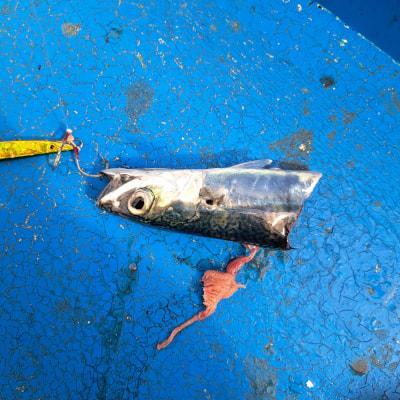 | 悪天候と思いきや…。 気分転換にちょこっとジギング。 相変わらず沖サワラが邪魔します。 |