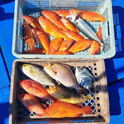 | ジギングに出船しました。 喰いが浅いのか?バラシが多く…。 シオ、マダイ、アオハタ、アザハタ、メンドリ、アカハタ…etc. 小さなアカハタは、ガス抜きしてリリースしました。 |