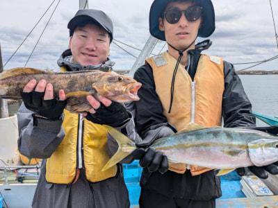 | ホウボウ、イナダ、トラフグ、アイナメ、カサゴ、ハナダイ、フグ混じった。今日は強風のため移動ままならずも初心者多かったわりにはソコソコの釣果でした。 |