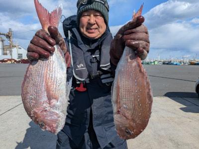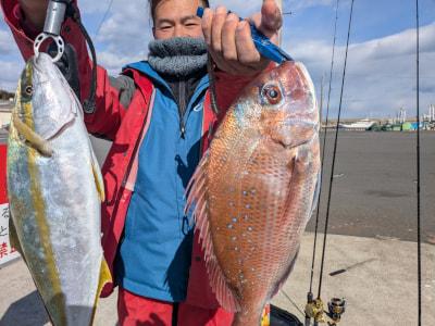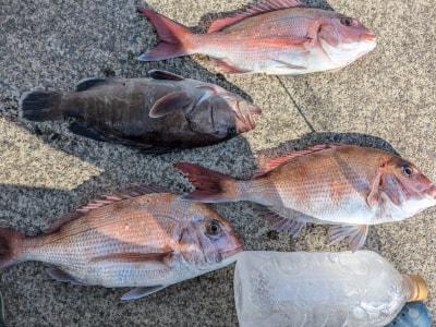 テンヤマダイで出船。マダイ0.3〜1.6キロを3〜6匹。ヒラマサ2k.ワラサ、カサゴ、ウマズラ、混じった。