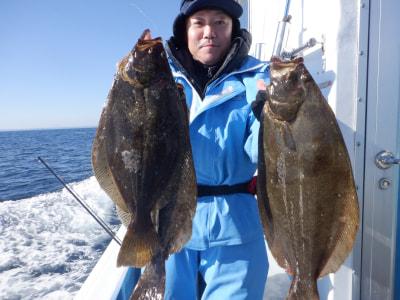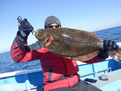 外道に、トラフグ4キロ、ワラサ、カサゴ、ソイなどが交じる。ヒラメ空席多数あり是非ご予約ください。