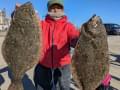 | ヒラメ0.8〜3.5キロを1〜3匹。ワラサ、イナダ混じった。アタリ少し遠いものの皆さん2〜3キロもののヒラメ釣り揚げました。 |