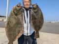 | ヒラメ0.5〜3.5キロを0〜6匹。マゴチ、マトウ混じった。今日は朝からヒラメアタリ多く皆さん良型ヒラメ、マゴチソコソコ釣り揚げました。 |