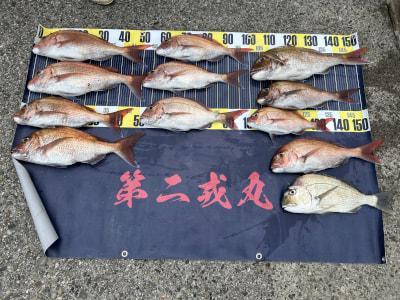 マダイ | 45〜60cm | 11匹 | 天秤カゴ | オキアミ |