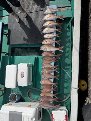 | タイ釣り午前便出船しました。 朝よく当たり後半減速しましたが船内19枚上がりました(^-^)v |