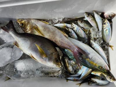 | 釣り場 | 釣り人 | 魚種 | 大きさ | 匹数 | 仕掛け | エサ |