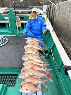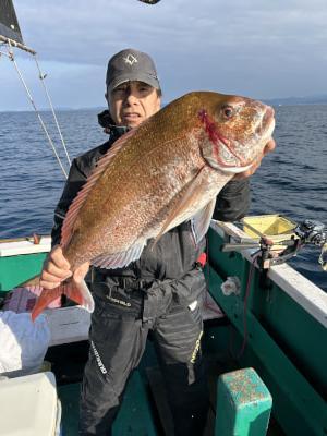 タイ釣り午前便出船しました。 水温上がって食い気も上がって71センチ頭に船内32枚。 三連休空いてます。