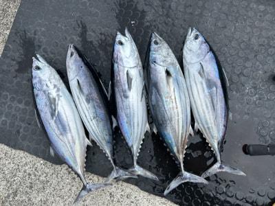 | コメント | カツオキャスティング出船しました。 カツオ2キロ前後5本!1本バラシ スーパーゲストのキハダ35キロ! カツオの仕掛けだったのでPE2.5号で2時間かけて取ってくれました! 全身筋肉痛ですなぁ、お疲れ様でした! |