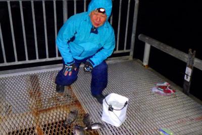 今日の半夜メバルですが、全体で10匹ほどでした…場所も、先端だったり中央付近だったり階段下だったりでぽつぽつといった感じで… |