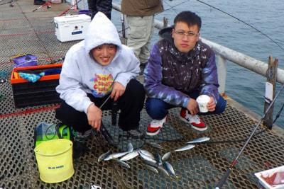 今日も朝から桟橋各所で小アジサイズのマアジが釣れています!型のいいサイズは階段下の大阪側付近が今日も多かったです〜! |