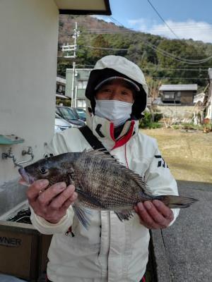 チヌ | 1匹 | ハリス2.5号 6号針 オモリ0.5号 竿1.7m | むきカキ | |