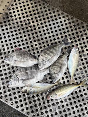 チヌ | 25〜33cm | 4匹 | 竿1,6mハリス2号チヌ針4号 | オキアミ |