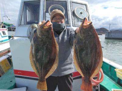 湾内にて肉厚ヒラメ2枚とブリGET! 矢伏さん |