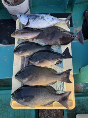 | コメント | 爆風続きでながーい冬休みでした!! グレ釣りに出船♪ いつものポイントは風と真逆の上り潮が激流で悪条件だったので 第2のポイントへ♪ グレ、ヤイトカツオ、イサギ、サンノジなど釣れました♪ |