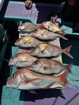 マダイ | 42〜67cm | 8匹 | 天秤 ハリス5号2本針 | オキアミ | |