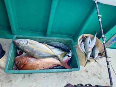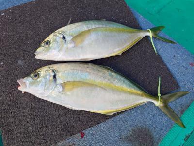 シマアジ | 52〜60cm | 3匹 | テンビンズボ釣り | オキアミ |