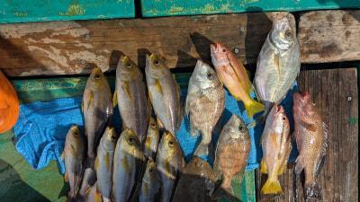 | コメント | オキアミ五目狙いで出船しました。カイワリ、オオモンハタ、タルミ、イサキ、メイチなどなどまずまず釣れました。明日も凪みたいです😊予約受付中です |