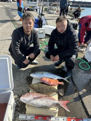 | これまでの魚種別釣果 | [鰤、メジロ、ハマチ、真鯛、ヒラメ、オオニベ、マトウダイ、マハタ、アオハタ、ガシラ、レンコダイ] |