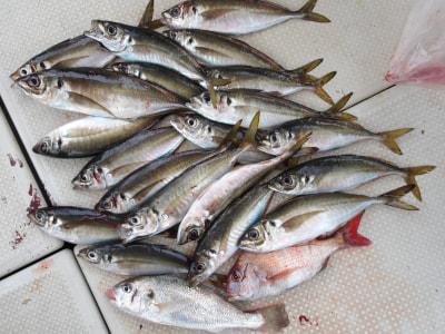 マアジ | 25〜40cm | 20匹 | 胴付き3本針 | 青虫・オキアミ |