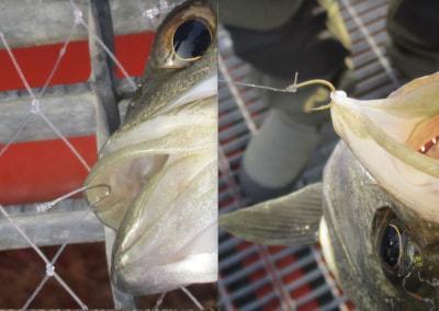 皮一枚で掛りの浅い場合が多いのでやり取りは丁寧に。。 |
