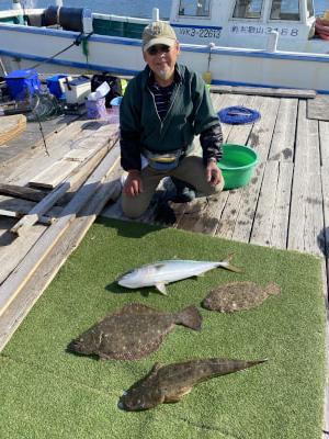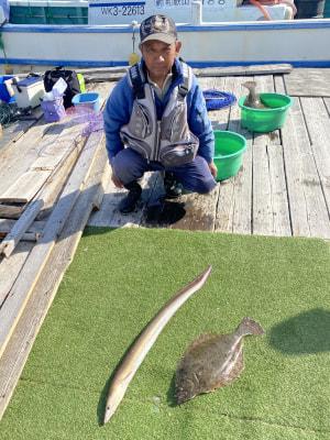 ヒラメ | 41〜59cm | 2匹 | 飲ませ釣り | 活きアジ | |