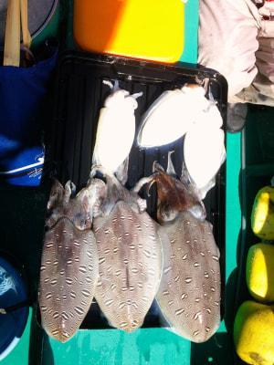 モンゴウイカ・スミイカ | 0.2〜1.5Kg | 山崎さんの釣果→6杯 | 竿釣り | エギ3.5号、オモリグ40〜50号 |