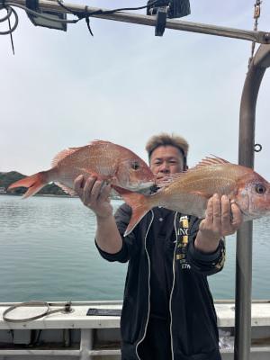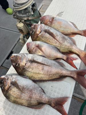 マダイ | 37〜55cm | 10匹 | 天秤ズボ、オモリ100号 | オキアミ |