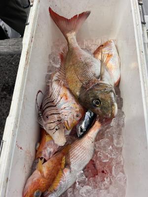 | コメント | 22日午前便、マダイ狙いからの中深海五目で出船しました‼️ |