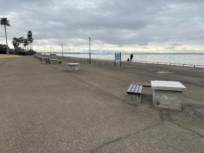 開園時、飾波共に穏やかです。開園時、波風共に穏やかです。曇っていて寒いです。雪もちらついてきました。風は無いので釣りやすいのですが・・・。 13時になりました。サビキ、エビ撒き、ぶっこみ、フカセ釣り等々されていますが釣果はありません。最近魚を見ていません・・・。 |