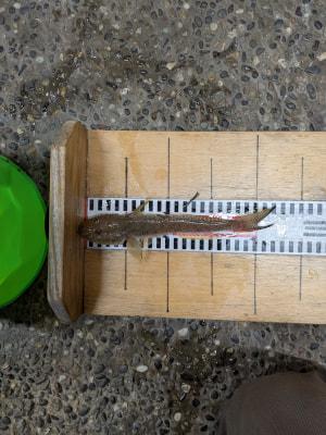 本日の釣果はハゼ22cm、ヘチ釣りで餌は赤イソメです、食べ応えのある…