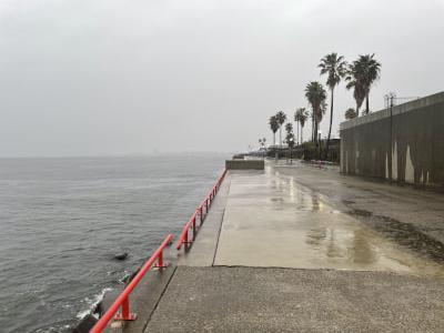 開園時、雨が降っています。波風は強くはないですが。お越しの際は雨具等を用意してお越しください。