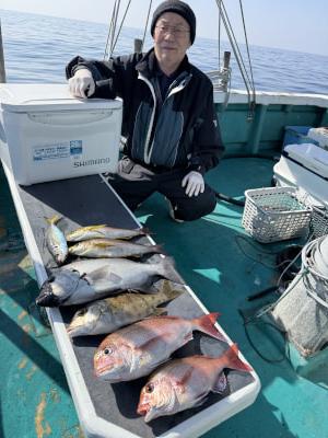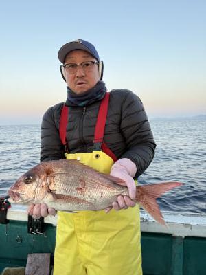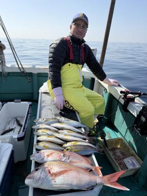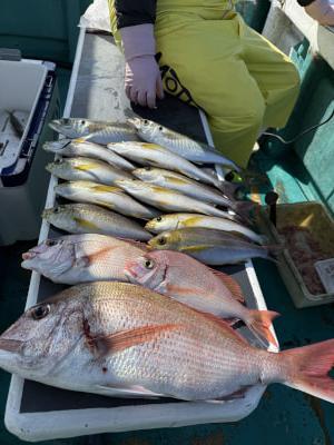 オキアミ五目釣り出船しました、マアジはダメでしたが真鯛、石鯛、イサギ釣れなんとかお土産確保でした、天気は最高に良かったです、1号船オキアミ五目釣りお気軽にお問い合わせください、お疲れ様でした!