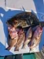 津市の池田氏らマダイ、ハマチ、イサキ、シオ他