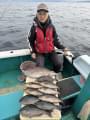 タイ釣り午前便出船しました。 水温上がって食い気も上がって71センチ頭に船内32枚。 三連休空いてます。