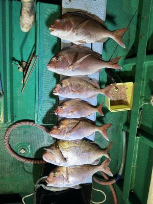 マダイ 40〜65cm 7匹 天秤カゴ オキアミ
