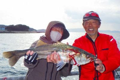 スズキ75aが釣れました! 中央付近・和歌山側 ズボ釣り・アサリにて 高橋様ご夫妻 |