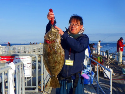 ヒラメ86pが釣れました!階段下(大阪側)ノマセ釣り(アジ) 榎勢ファミリー様 |