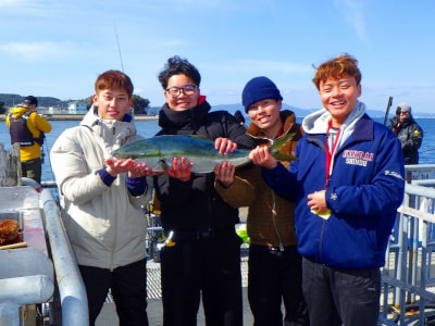 ブリ82pが釣れました!階段下(大阪側)ノマセ釣り(アジ) 近大釣部(幸村グループ)様 |