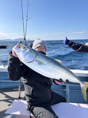 7日 やっと今年 初出船😌😌 ポイント つくなり ファーストヒット!! 今年 1発目の魚はから〜〜 フックアウト😇 でかそうだったのに😭😭 でっ!! ポツンとアヤメカサゴが😅 今年の1発目の魚になりました🤣🤣 流し直すと ノーマルぶりが2つ😄😄 青物釣れた‼️‼️😆😆 あれ?寒ブリは?🤔𓈒𓂂𓏸 しばらくするとトリプルヒットのタイミングが ラインブレイクと8`くらいの鰤鰤!! 鰤らしい鰤釣れました😁😁 今日は 2時頃まで 風 もつかなって思ってたら 昼過ぎから ボーボーに💦💦 後半は さわら 狙いに😅😅 感度あるものの なかなか釣れない💦 終了間際に さわらGET 出来たものの まだ難しい感じでした🥹🥹 本日も ありがとうございました🙇♀️