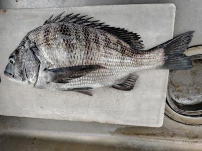 チヌ 1匹 ハリス2.5号 針5号 オモリ5B 竿1.6m かき むき身