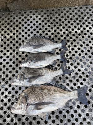 チヌ 28〜39cm 4匹 竿1,6mハリス1,25号チヌ針4号 オキアミ