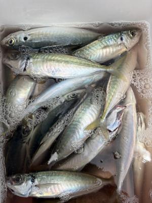 アジ 15〜20cm 40匹 竿2,7mハリス1,5号サビキ8号 アミエビ、オキアミ