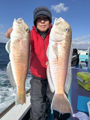 シロアマダイ | 41〜46cm | 3匹 | 天秤 ハリス4号2本針 | アオイソメ、オキアミ | |