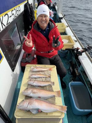コメント 午前便でシロアマダイ釣りに出船♪ 船中、シロアマダイ14匹、イトヨリダイ26匹、チャリコ、アオハタなど釣れました♪ 予約受付中♪